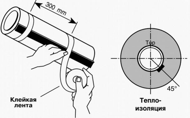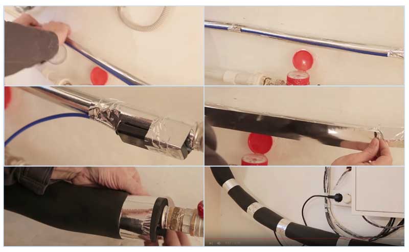 Une fois le travail terminé, vous devez envelopper le système résultant avec du ruban d'aluminium pour la fixation et le blindage. Afin de réduire les pertes de chaleur, il est recommandé d'ajouter une isolation thermique.