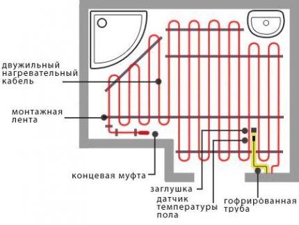 Étape 4. En plus de tout cela, un marquage est effectué, qui indiquera l'emplacement d'un câble chauffant sur la ligne principale.