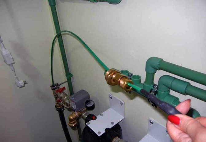 - le câble chauffant pour l'alimentation en eau, passant à travers le presse-étoupe d'étanchéité du couplage, est connecté à une source d'alimentation - une prise, une boîte de jonction ou un système de commande automatique;