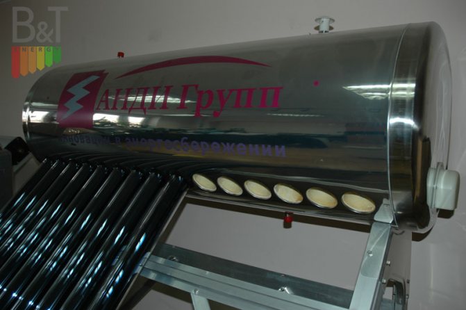 Séparément, il faut dire sur le réservoir de stockage d'eau. Réservoir deux couches... La couche extérieure du réservoir d'eau est faite de matériaux de haute qualité - à faible teneur en carbone (pour les systèmes saisonniers) ou en acier inoxydable poli (pour une utilisation toute l'année) avec une teneur en titane. Cela garantit une résistance élevée à la corrosion et une longue durée de vie.