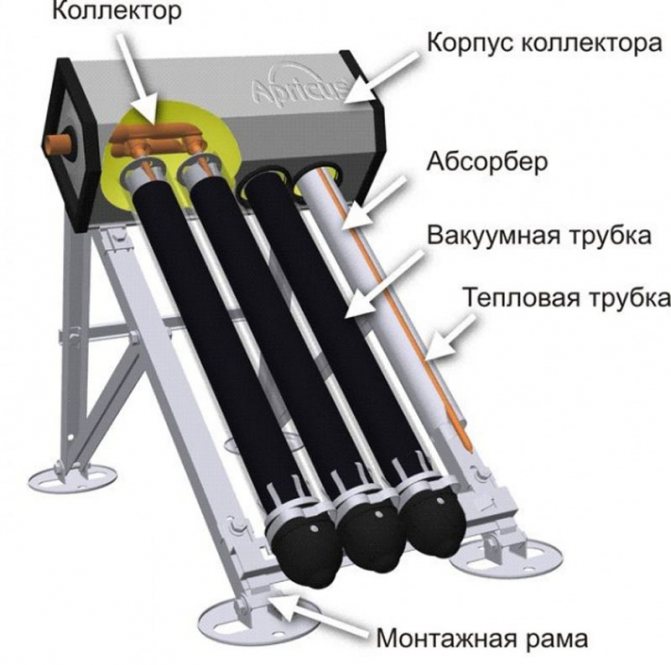 À l'intérieur de chaque tube, il y a un canal d'une ou deux tiges de cuivre avec un liquide de refroidissement. En captant les rayons du soleil, l'élément agissant chauffe le matériau caloporteur, assurant ainsi le fonctionnement du capteur.