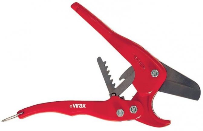 Travailler avec des tuyaux en plastique est beaucoup plus facile. Les coupe-tubes de conception spéciale vous permettent de couper des tubes assez facilement et rapidement en morceaux nécessaires. Le processus lui-même est très similaire à l'élagage des branches de plantes de jardin avec un sécateur.