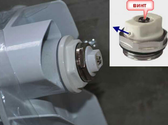 - Sur les radiateurs, il est courant d'installer une soupape de décharge manuelle. Il est monté à cet endroit car l'aération se produit le plus souvent à cet endroit de la zone de chauffage. Par conséquent, ils essaient d'équiper tous les radiateurs d'appareils.