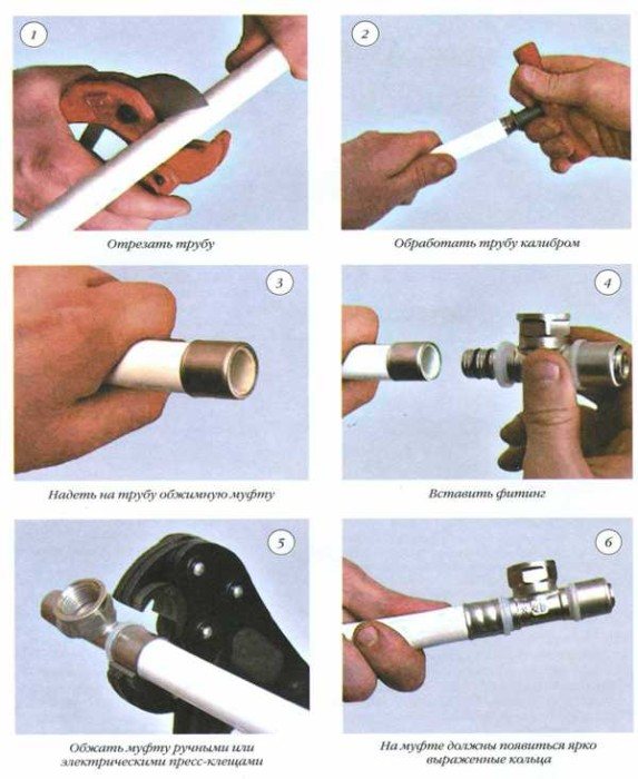 Le système de tuyauterie est connecté par des raccords spéciaux en laiton ou en métal. Ils forment facilement le joint requis. On considère que l'installation la plus simple est celle où des raccords à compression filetés sont utilisés. La fixation et l'étanchéité sont réalisées avec un écrou avec une bague de compression à l'extérieur et des bagues de compression à l'intérieur.