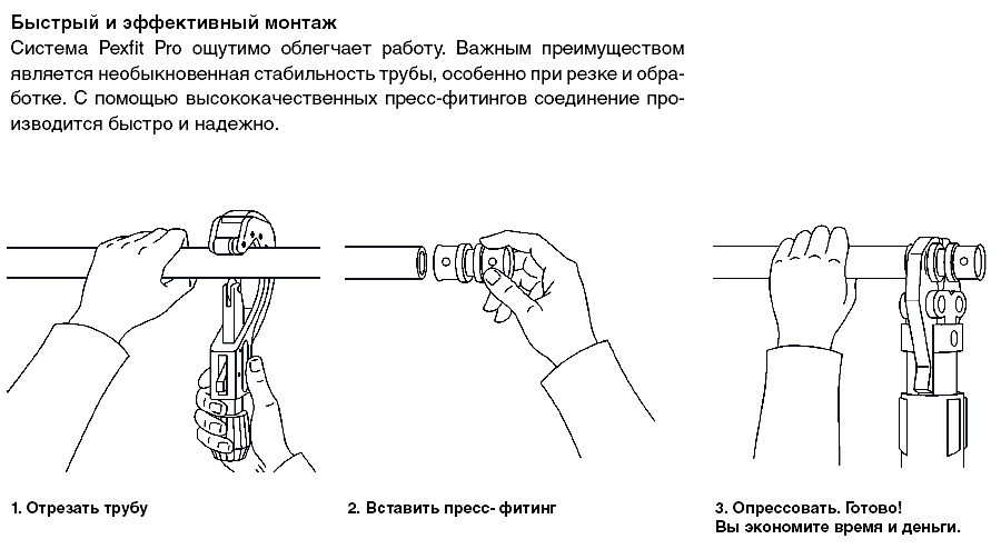 Aucune déformation des tuyaux sous l'influence des températures élevées du caloporteur (jusqu'à 95 °), la flexibilité, la surface intérieure lisse permet l'installation d'un système de chauffage fiable.