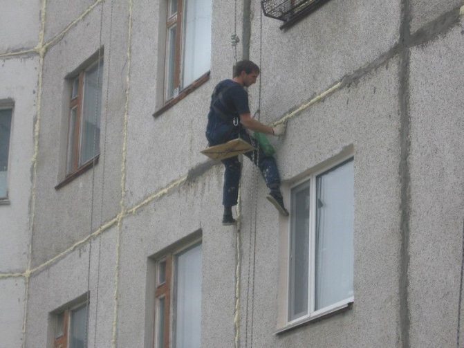 Pour la production d'isolation extérieure, il est nécessaire d'inviter des grimpeurs industriels ou de faire appel aux services d'une tour coudée.