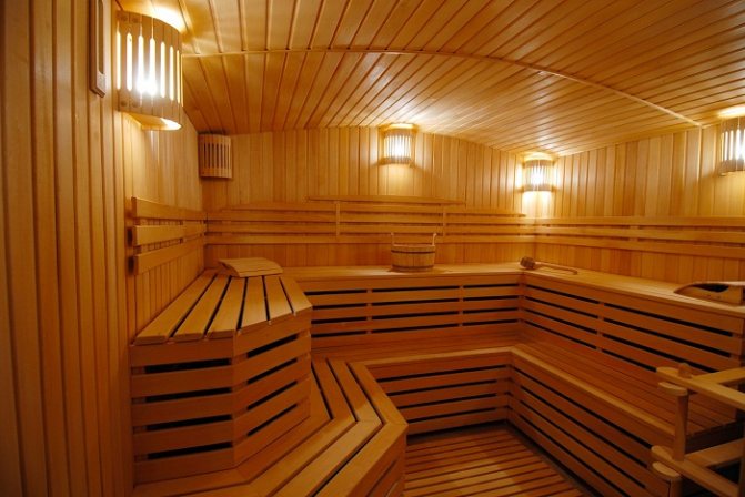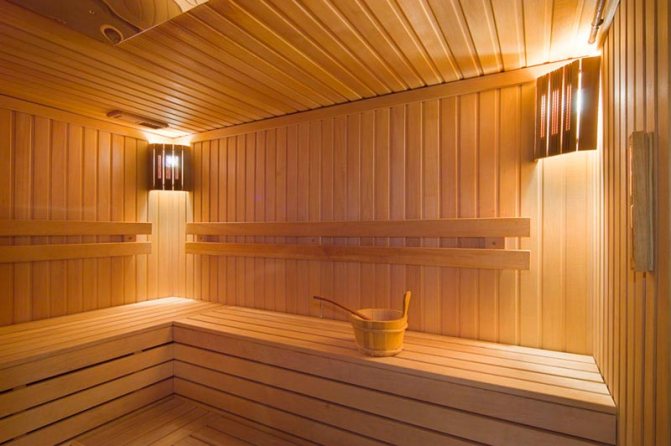 Au stade final, un plafond de finition du revêtement est fixé aux guides. Pour cela, il est impératif d'utiliser des essences de bois qui n'émettent pas de résine lorsqu'elles sont chauffées. Aspen est le plus souvent utilisé, il combine des performances élevées avec un prix abordable et n'est pas très sensible à la pourriture.
