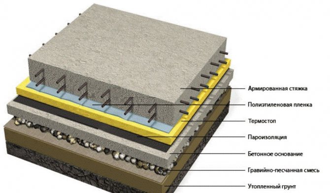 - L'étape de réchauffement est précédée de travaux d'imperméabilisation, qui sont effectués sur la couche de base du béton, posée au sol à l'aide d'un revêtement de bitume, appliqué cycliquement pour la possibilité de polymérisation en 3 couches. La méthode combinée doit être considérée comme rationnelle lorsqu'il y a deux couches de revêtement et qu'une couche de matériau de toiture est posée entre elles.