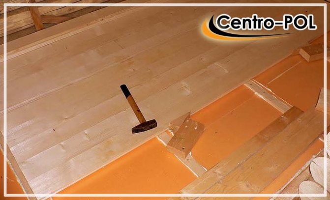 - Plancher en bois - des bûches de bois sont posées, qui sont fixées avec de la mousse de polyuréthane. Le revêtement de sol est fait sur le dessus.