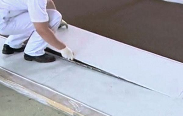 - C'est très bon lorsque les dalles du matériau utilisé ont des rainures et des joints de connexion. Après la pose des dalles, les joints sont collés avec du ruban adhésif ou soufflés avec de la mousse.