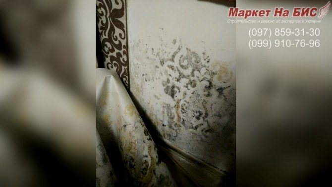 - Dans certains cas, des moisissures et des moisissures apparaîtront sur les murs, les plafonds et d'autres surfaces. Cela est dû à une violation de l'échange d'air dans la pièce et à une augmentation de l'humidité. De plus, des micro-organismes nuisibles peuvent se développer non seulement sur les surfaces, mais également à l'intérieur du gâteau isolant, ce qui réduit considérablement la durée de vie de l'isolant.