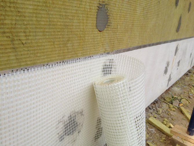 Pour le sous-sol, la même procédure pour enduire la façade avec isolation est effectuée, mais après le renforcement, des composés d'étanchéité bitumineux sont nécessaires. De plus, ils sont protégés par des dalles d'amiante-ciment ou d'autres matériaux sur lesquels une visière est formée. Le bord supérieur de l'isolant sur le fronton doit également être recouvert de carreaux ou d'une visière métallique. Les espaces sont remplis de mastic imperméable.
