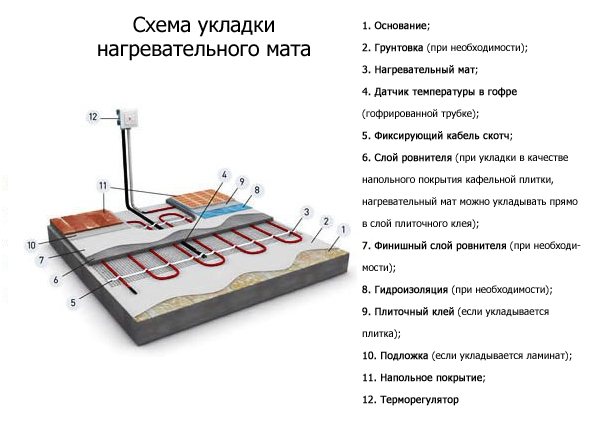 Schéma de raccordement du chauffage électrique au sol