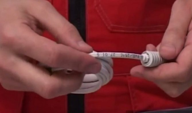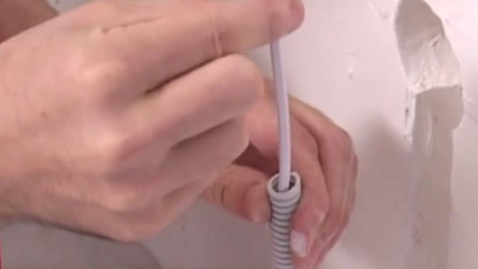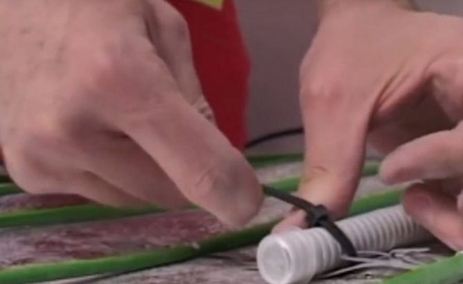 Étape 1. Faites passer le fil avec le capteur de température à travers le tube ondulé (le diamètre de l'ondulation est choisi en fonction des dimensions du fil).