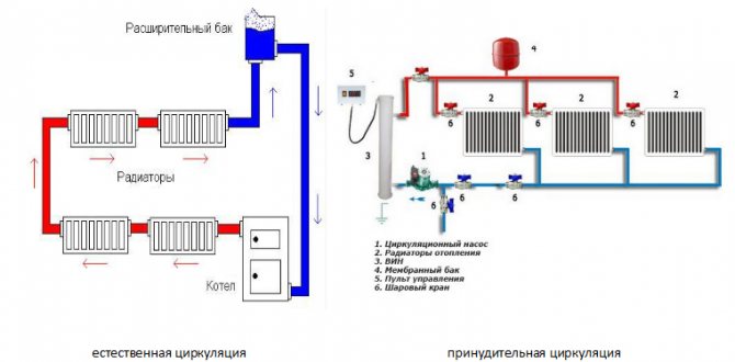 Dans un système à circulation forcée, un différentiel externe (provenant du chauffage principal) ou sa propre pompe de circulation est utilisé pour le créer. De plus, les pompes peuvent fonctionner à la fois dans des systèmes fermés et ouverts.