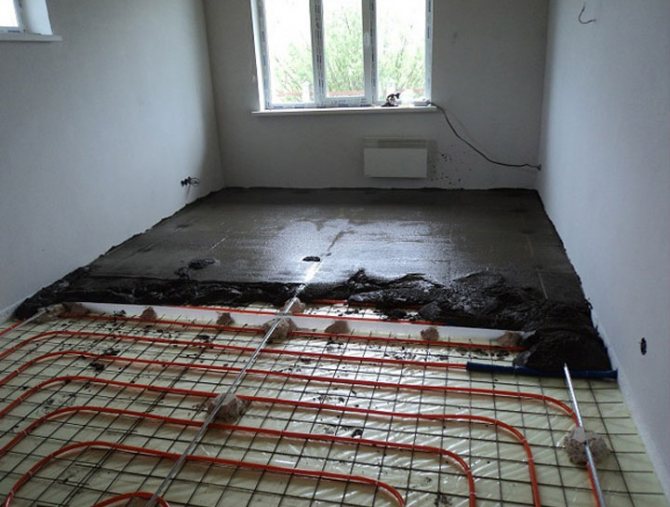 - Chauffage uniforme de la pièce. La chape, qui dégage de la chaleur par rayonnement, la dégage en proportions égales dans chaque carré de la pièce.