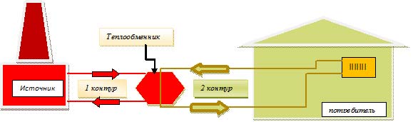 L'unité de chauffage d'un système indépendant comprend un échangeur de chaleur, à travers lequel l'eau de la conduite de chauffage délivre de l'énergie thermique au caloporteur en boucle fermée. Le schéma peut être appliqué si l'antigel est utilisé comme liquide de refroidissement dans une maison privée. En présence de compteurs de chaleur, une telle connexion vous permettra d'éteindre le chauffage lors d'un long trajet sans risquer de dégivrer le système.