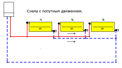 L'inconvénient de tels systèmes est l'impossibilité de leur équilibrage compétent. Le premier appareil est toujours chaud, le dernier est toujours chaud.