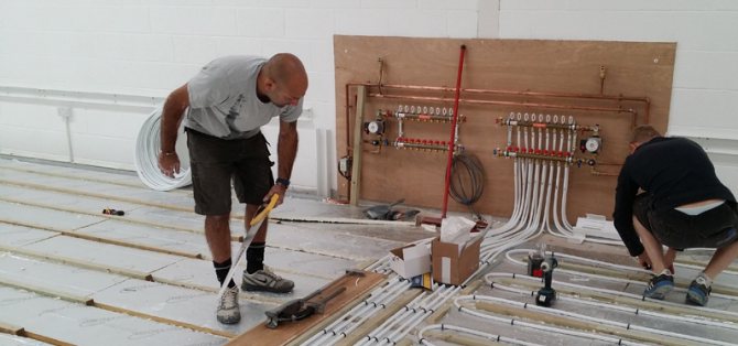 - La ligne est alimentée à un collecteur qui a une sortie pour l'eau chaude et réfrigérée. Connectez l'ensemble du système à la chaudière de chauffage. Test du système de chauffage.