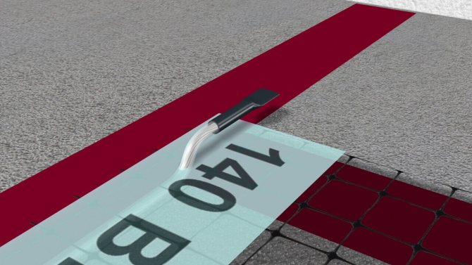 Le tapis chauffant est généralement déroulé du mur sur lequel se trouve le thermostat. Lorsque vous atteignez le point où vous devez effectuer un virage, le treillis sur lequel le câble est attaché est coupé, laissant le câble intact. Le tapis peut maintenant être tourné dans n'importe quelle direction. Si nécessaire, elle peut être augmentée plus haut ou plus bas. Pour cela, une partie du câble est libérée du maillage. En coupant un morceau de filet, vous en obtenez un morceau d'une certaine longueur. Il devrait être assez long pour serpenter également.