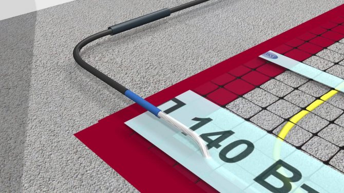 Dans sa forme la plus simple, le câble est fixé à un treillis en fibre de verre ou autre polymère. Beaucoup d'entre eux ont un adhésif protégé par un film. Cela rend l'installation encore plus facile : pour fixer le tapis, vous n'avez pas besoin de le clouer, mais simplement de retirer le film protecteur et de le coller. Le câble peut être unipolaire ou bipolaire et, par conséquent, avoir une ou deux extrémités froides.