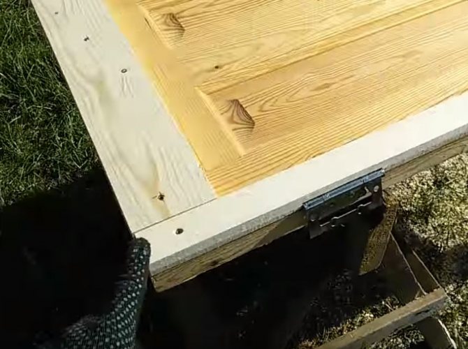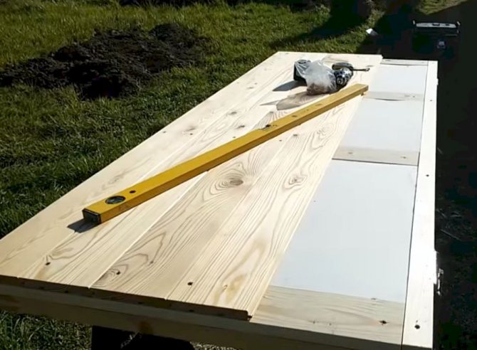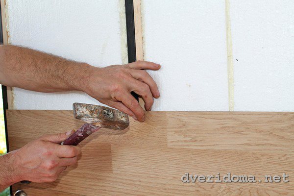 Après avoir éliminé tous les défauts, l'installation d'isolation sur les portes d'entrée en bois commence.
