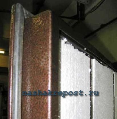 Sur la base de la conception décrite, il est possible de noter plusieurs zones problématiques du point de vue de l'économie de chaleur, qui doivent être isolées avec une haute qualité. Premièrement, ce sont la jonction du cadre de la porte et de l'ouverture. Souvent, lors de la préparation d'une niche pour l'installation d'une porte en fer, les installateurs effectuent des travaux pour agrandir le point d'entrée, tout en supprimant non seulement une partie de la couche de plâtre, mais également une partie de la brique. Les bords de la niche deviennent inégaux, ce qui conduit à l'apparition de larges espaces à travers lesquels une perte de chaleur importante est possible. Deuxièmement, la porte elle-même, en métal, ne contribue pas à une augmentation de la température à l'intérieur des locaux, car l'acier a une bonne conductivité thermique. Le troisième problème d'isolation est le point de contact de la boîte d'entrée et du vantail de la porte en gelée.