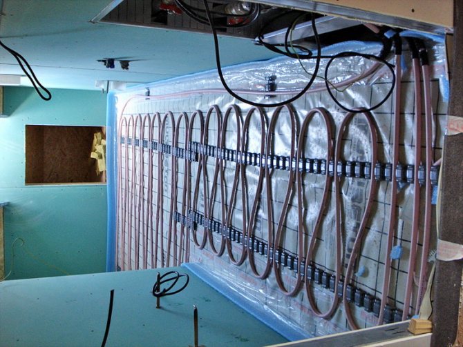 Maintenant, cette technologie est de retour, mais seulement légèrement transformée, au lieu de canaux dans les murs, nous avons des tubes avec un liquide de refroidissement ou un câble électrique. Essayons de comprendre cette technologie, ses avantages et ses inconvénients, sa faisabilité et son économie, son impact sur la santé humaine et le microclimat dans la maison.