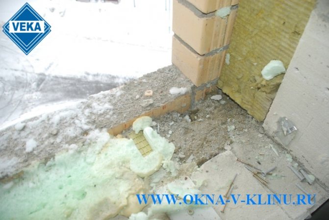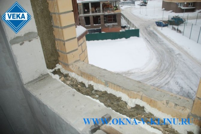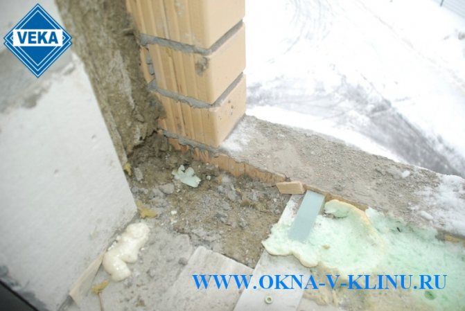 - La zone sous la fenêtre et l'ouverture sont nettoyées de la poussière et de la saleté, nivelées avec du mortier de béton.