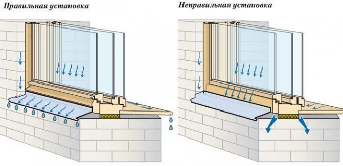 Les structures de fenêtre sont fixées dans l'ouverture à l'aide d'attaches spéciales (ancrages) et le joint est fermé avec de la mousse de polyuréthane, qui fonctionne bien si elle est cachée du soleil et de l'humidité. Cependant, une telle mousse n'est absolument pas étanche à l'air contre les précipitations, ce qui affecte le fonctionnement ultérieur des coutures d'assemblage et l'ajustement serré des structures à la base de l'ouverture. Comment cela peut-il arriver?