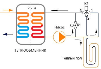 Regardez une vidéo détaillée sur la façon de connecter un plancher d'eau chaude au chauffage central via un échangeur de chaleur: