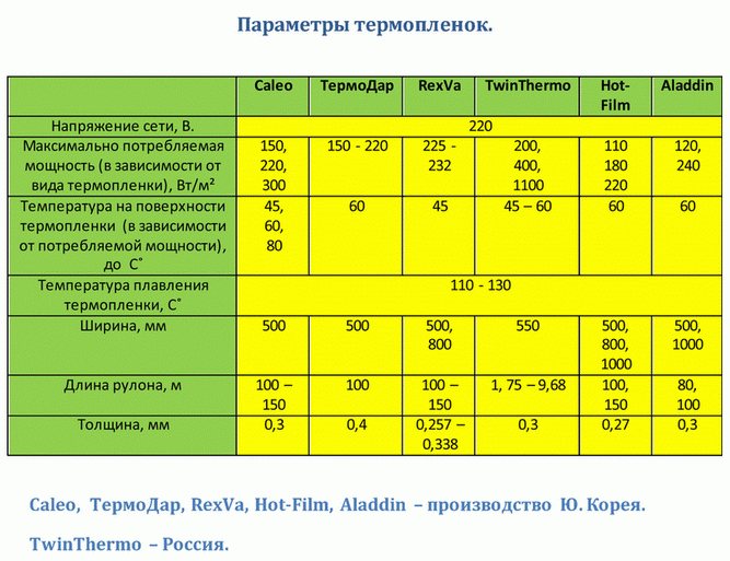 Les chiffres présentés sont valables pour un fonctionnement 24 heures sur 24 des sols chauffants en film, mais en pratique, ils fonctionnent en mode intermittent, obéissant au système de thermorégulation.