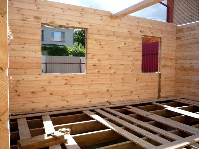 Pour référence. Parfois, les maisons en bois sont souvent construites à partir de bois profilé insuffisamment séché, c'est pourquoi, au début, des changements se produisent dans l'épaisseur des structures, entraînant des fissures dans le matériau. Dans de telles conditions, la chape en souffrira certainement.