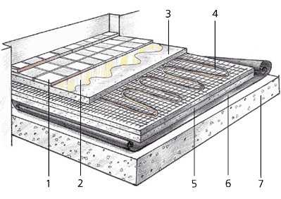 Plancher chaud à faire soi-même sous le stratifié sur un sol en béton