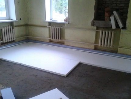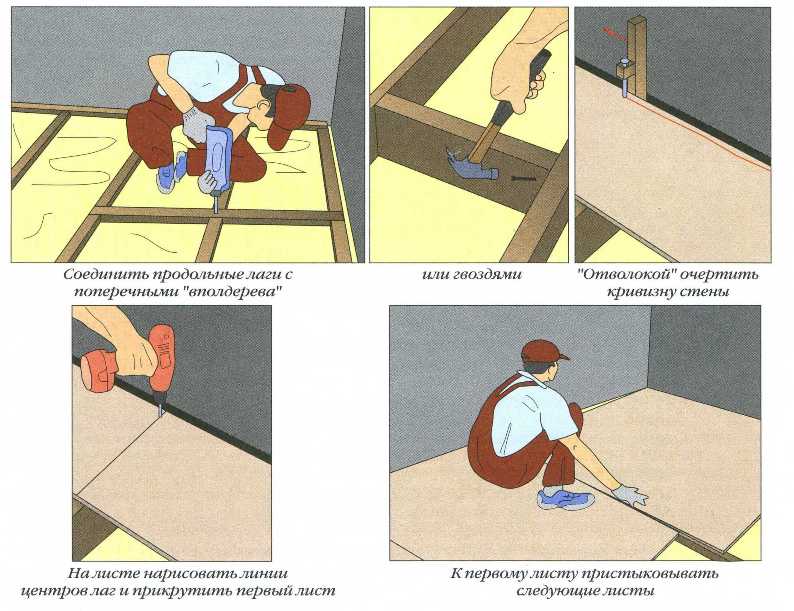 Il est nécessaire «d'inonder» leurs capuchons pour que la surface du sol soit exempte d'irrégularités. Tous les joints entre les feuilles sont en mastic et après 48 heures, le linoléum ou la moquette peuvent être posés.