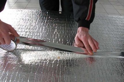 La mise en œuvre des travaux, en règle générale, est effectuée à travers un isolant en rouleau. Le produit est déployé sur une base en bois, tandis que sa surface réfléchissante doit regarder vers le haut