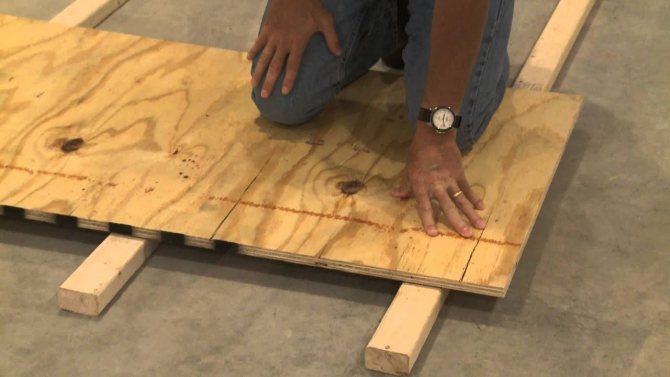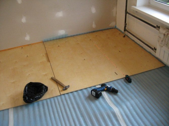 - sur une chape en béton - du contreplaqué d'une épaisseur de 12 mm est utilisé;