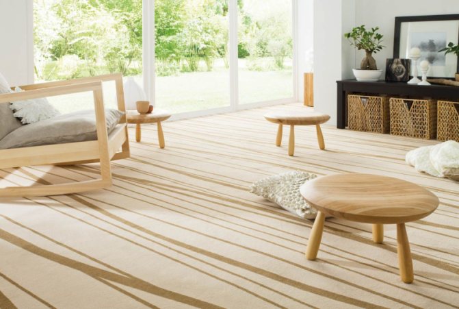 - Revêtement de sol en moquette avec fixation par ruban. Vous pouvez utiliser une colle spéciale.