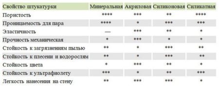 Dans le tableau, vous pouvez voir les caractéristiques comparatives des principales propriétés des systèmes de plâtrage. Si vous décidez d'isoler votre maison avec un isolant thermique anti-vapeur, choisissez la finition appropriée. Dans le cas de la laine minérale, les mortiers de ciment et de silicate vous conviennent. Avec une mauvaise sélection, la finition de la façade peut en souffrir et ne durera pas longtemps.