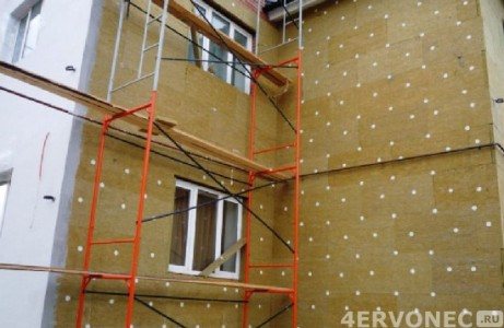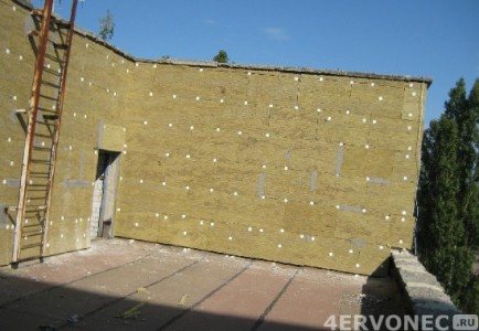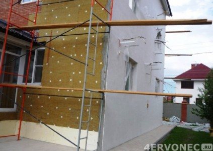 Isolation thermique de la façade avec de la laine minérale - l'installation du matériau sur les murs a été réalisée "à l'étirement"