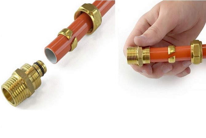 Le raccordement des éléments de la canalisation métal-plastique peut être réalisé à l'aide de deux types de raccords: