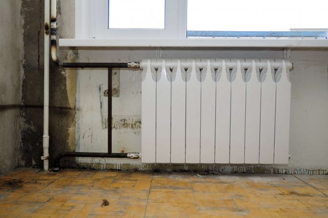 - Option ouverte... Les tuyaux installés horizontalement sont placés au-dessus du niveau du revêtement de sol et les produits verticaux - uniquement dans les coins. Grâce à cette installation, il est possible de rendre la canalisation moins visible.