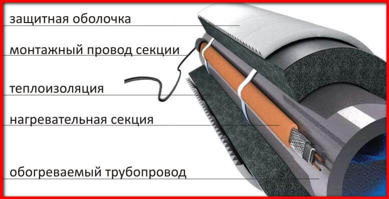 L'application d'un réseau de chauffage externe n'est pas recommandée, car de nombreuses couches devront être enroulées.Par conséquent, pour les longues sections du tube principal, il est préférable de choisir des manchons prêts à l'emploi avec un diamètre de canal intérieur égal au diamètre du tuyau utilisé. L'installation est réalisée en coupant la paroi du manchon, puis cet endroit est collé avec du ruban adhésif.
