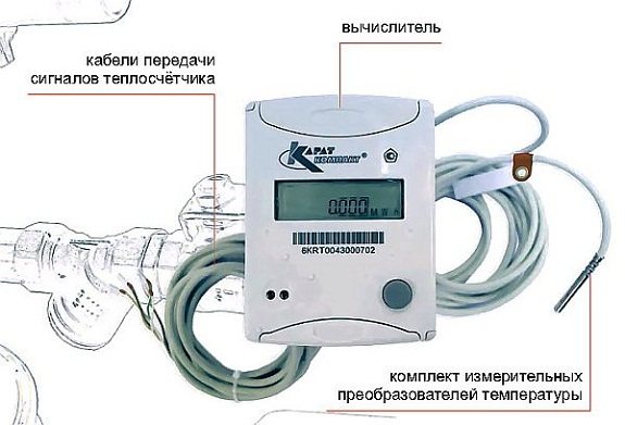 Les compteurs de chaleur sont équipés de capteurs de température et de capteurs de débit, qui sont chargés d'afficher les informations. L'un de ces dispositifs est installé dans la conduite d'alimentation en eau et l'autre dans le tuyau de retour. Les capteurs prennent des mesures, puis un équipement informatique spécial les traite, après quoi des informations complètes sur la consommation d'énergie thermique apparaissent sur l'écran de l'appareil. L'équipement est assez précis, son erreur est de l'ordre de 3 à 6%.