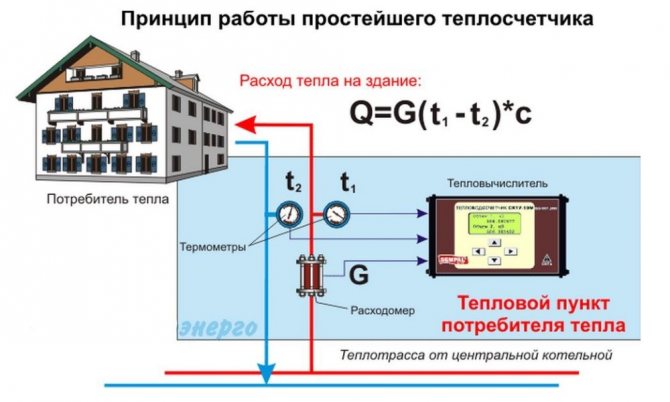 Il existe de nombreux modèles de compteurs de chaleur, de conception et de taille différentes, mais le principe de fonctionnement d'un compteur de chauffage est resté le même que sur l'appareil le plus simple qui mesure la température et le débit d'eau à l'entrée et à la sortie de la canalisation de une installation de fourniture de chaleur. Les différences n'apparaissent que dans les approches d'ingénierie pour résoudre ce problème.