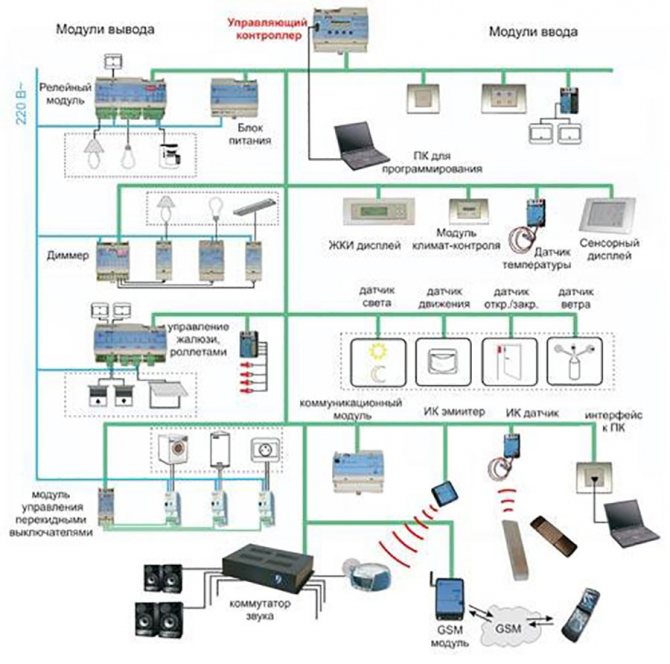Les contrôleurs et les programmeurs aident à personnaliser le fonctionnement de tous les systèmes inclus dans la «maison intelligente», et pas seulement à contrôler le chauffage domestique. La communication entre tous les systèmes s'effectue via des blocs locaux et des relais exécutifs, et leur fonctionnement est surveillé à l'aide de capteurs.