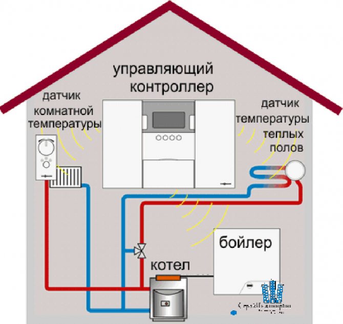 Tout cela peut être contrôlé par un seul système, appelé «maison intelligente». Il s'agit d'une unité informatique de contrôle associée aux appareils électroménagers et aux systèmes de capteurs de température intérieurs et extérieurs. En fonction des informations des capteurs et du mode réglé, un tel système est capable d'abaisser ou d'augmenter la température dans la pièce. De plus, il peut réguler la quantité d'eau chaude prête à être utilisée dans la chaudière.