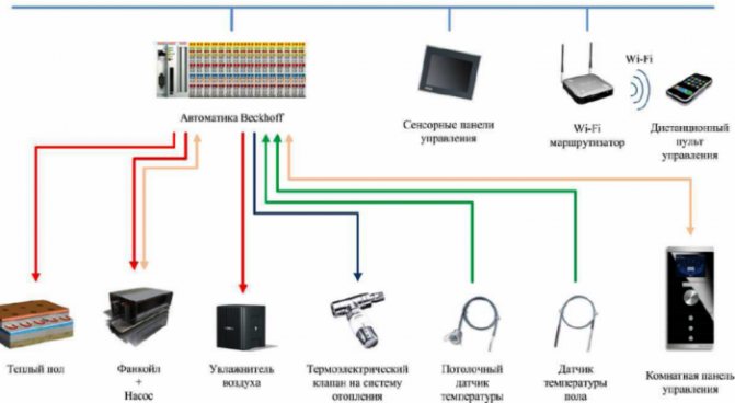 Une approche intégrée implique le contrôle du chauffage en combinaison avec la surveillance du fonctionnement du système de ventilation et du système d'alimentation en eau. Cela vous permet de maintenir pleinement un certain climat dans la maison, en tenant compte des indicateurs d'humidité de l'air et de température dans différentes pièces.