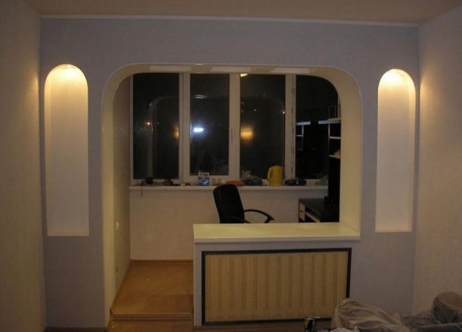 - Si vous ne prévoyez pas de démolir la cloison séparant les deux pièces, il vous suffira à ce stade de retirer les fenêtres à double vitrage et la porte de la loggia, puis de procéder à la conception de la porte.