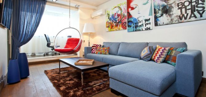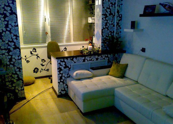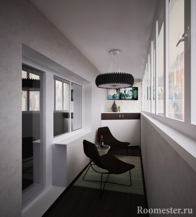 - En raison du fait que la combinaison de la pièce et de la loggia a été réalisée afin d'augmenter la surface utilisable, il n'est pas souhaitable de surcharger la nouvelle pièce avec des meubles. Privilégiez les meubles hauts et ne placez pas les armoires et les armoires dans tous les coins.